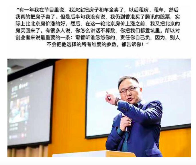 即使是在节目里多次称坚决不买房的罗振宇,终于在2017年初入手了一套房子。惹得网友一阵痛骂,“那些年劝你不买房的名人,最后私下偷偷抄底房子了。”