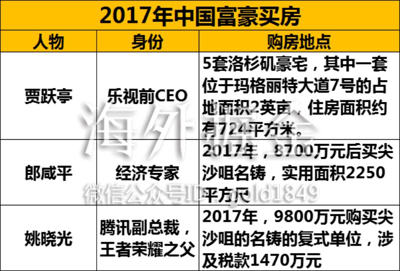 但是,比起2017年以前的年份,现在越来越难听到明星大佬们在海外买房的消息了。2017年,除了“明日回国”的贾跃亭被媒体踢爆他在洛杉矶的9套房产外,其他明星大佬们的海外置业之路则显得有些“无足轻重”了。