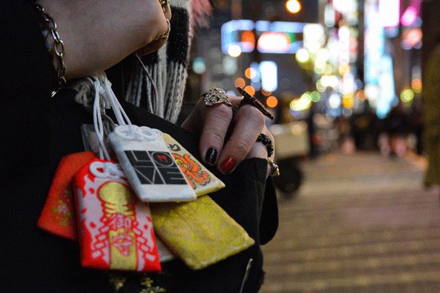 下车后,他送给我一个小纸袋,里面是日本御守,上面写着诸事顺利。