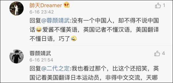 英国人用英语采访,美国人给翻译成中文,日本人用东北话回答……这画面太美不敢想象。