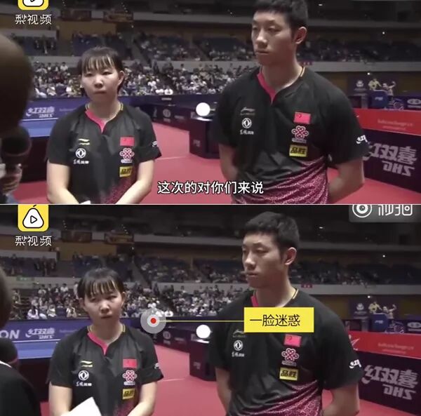 混双冠军许昕和朱雨玲赛后接受现场采访时,发生了逗趣一幕。