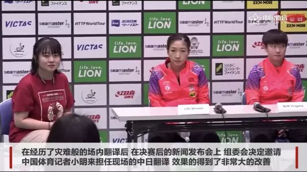 但对国乒小将们来说,可能赛后采访是比打比赛更严峻的挑战,因为谁也听不懂日本翻译的中文提问到底想问个啥。