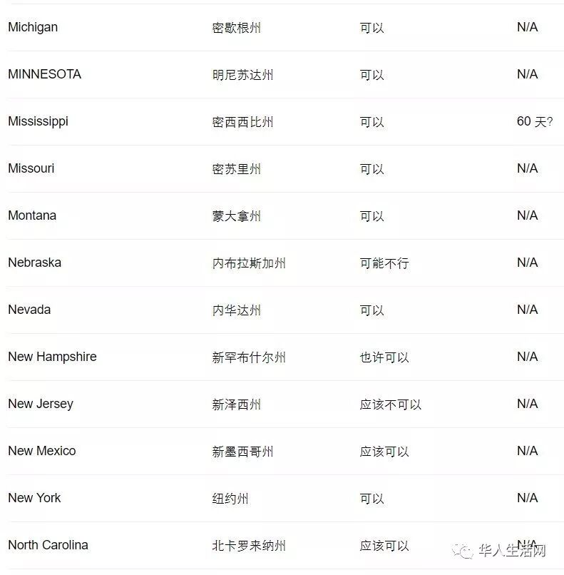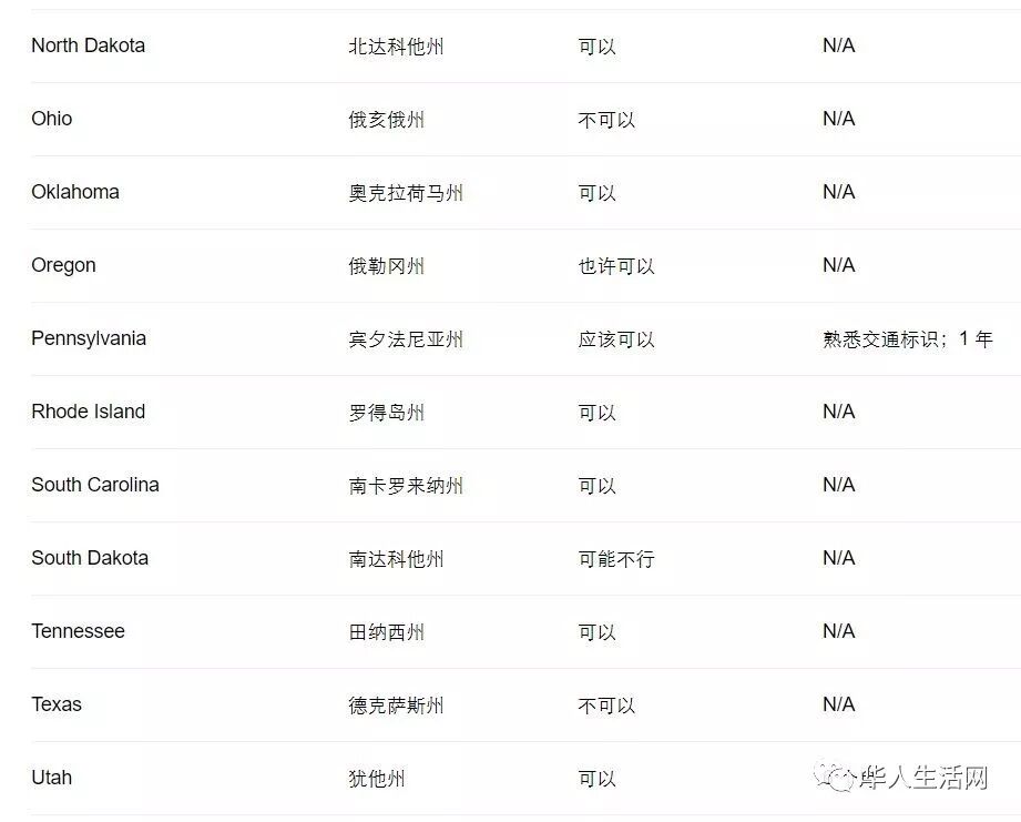 比如说纽约州,我们刚刚看到这位交流学者因为超过90天,被认定为无证驾驶,但是为什么上面表格中却写的纽约无限制条件(N/A)?