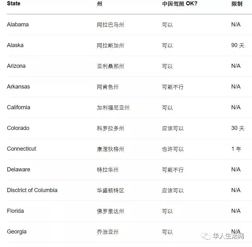 (注意:各州法律会有更改,请驾驶者在持有中国驾照在美开车前,再次查阅当地DMV具体要求。)