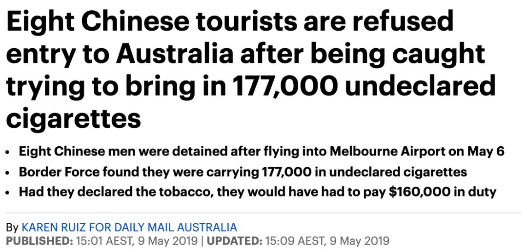 原来,海关人员发现,这已经不是这位导游大姐第一次走私烟草入境澳洲了。
