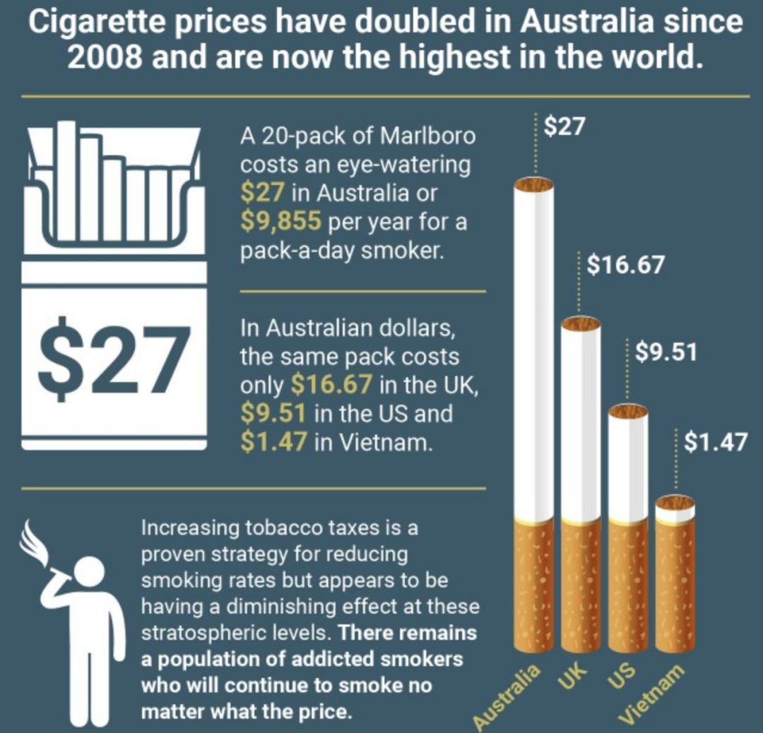 尽管澳洲政府每年都在提高对烟草的税收,但吸烟的人数也没有减少。