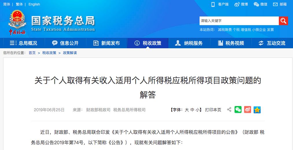 近日,财政部、税务总局发布《关于个人取得有关收入适用个人所得税应税所得项目的公告》,将部分原按“其他所得”征税的项目调整为按照“偶然所得”项目征税,偶然所得适用税率为20%,与原“其他所得”税率相同,纳税人的税负保持不变。