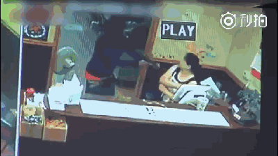 对方三人可能没想到这女人居然这么猛,马上也开枪反击,但气势完全被碾压。三名歹徒抱头鼠窜,混乱之中一名歹徒慌不择路,直接朝着玻璃门撞了过去!