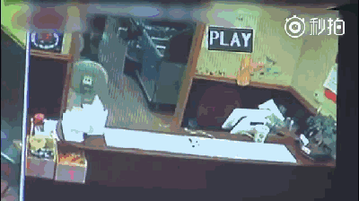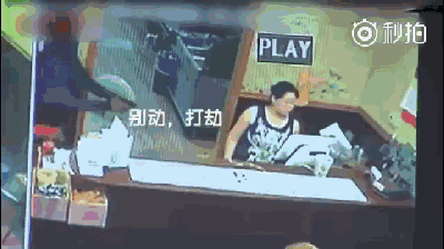 歹徒似乎不满足,继续凶狠地用枪对着老板娘,威胁对方给钱。
