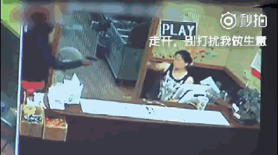 见歹徒还是不依不饶,老板娘干脆直接上手抢枪了,老板娘这时候抓住枪反击。