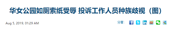 纽约一名华人女子绝对没有想到,自己只是因为上厕所没有带纸,向公园工作人员借,不仅遭到拒绝,还被对方以歧视的语言辱骂……