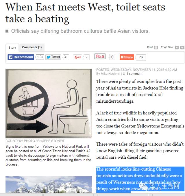黄石公园近年源源涌入中国游客,但文化隔阂为该国家公园带来一些困扰,中国游客蹲坐公共厕所马桶上,频频踩坏马桶座。