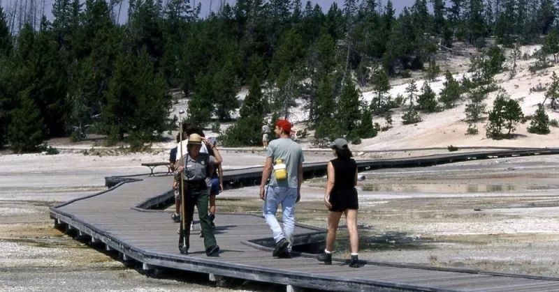 事情是这样的,据一位知情人透露,一名中国游客8日在游览Norris Geyser温泉时,没有走木栈道拍照被举报。