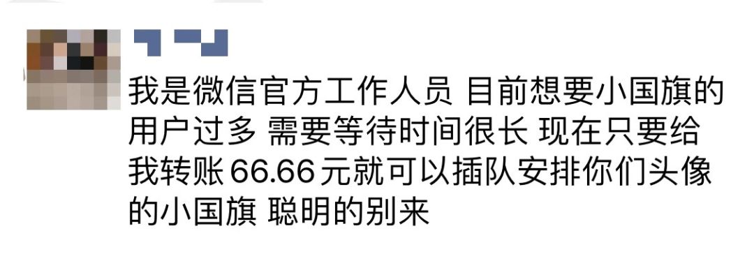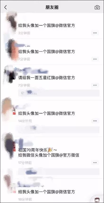 只要按照“请给我一面国旗@微信官方”这样的格式发了朋友圈动态,你的微信头像就能带上一个五星红旗!