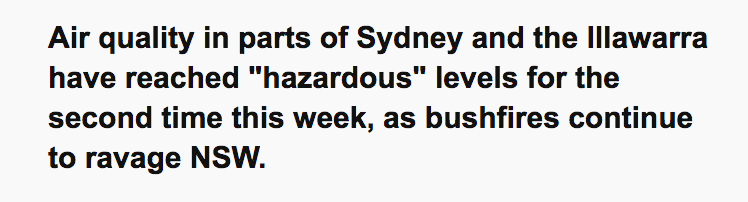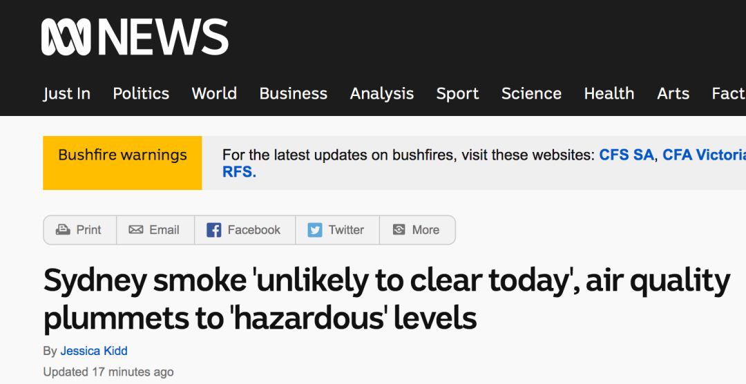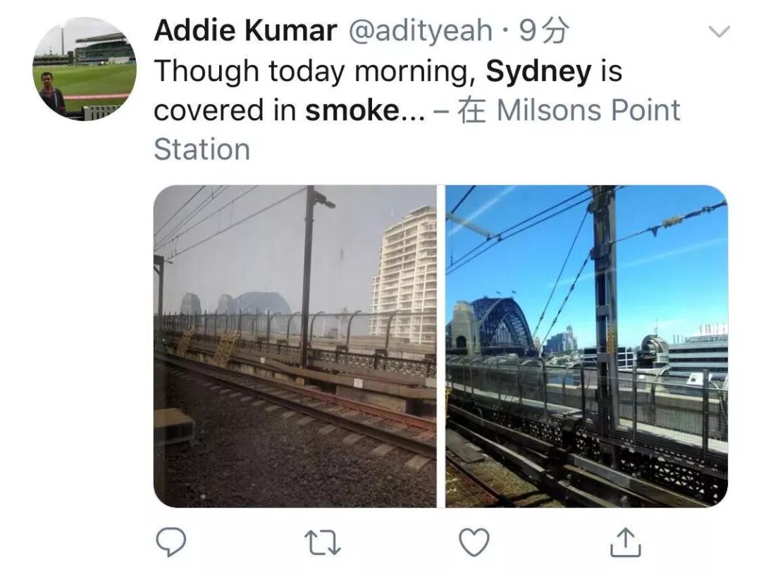 网友:“今天的早晨的悉尼,被浓烟笼罩!”