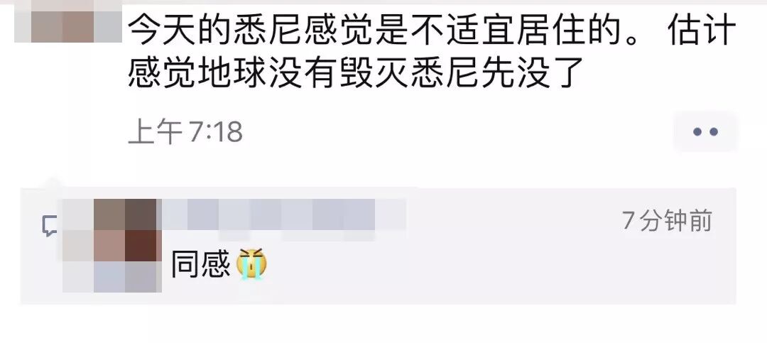 网友:“今天的悉尼感觉是不适宜居住的。估计感觉地球没有毁灭,悉尼先没了!”