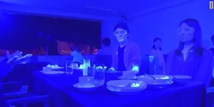食客的餐盘里、纸巾上、水杯、脸上、手上,到处都是这种荧光物质。