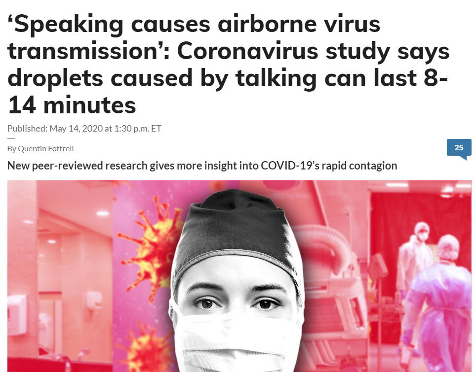 换句话说,咱们日常说说话也能传染新冠病毒,根本不要通过咳嗽或打喷嚏,当你开口说话,微沫里的病毒就悬浮在空气中了。令人细思极恐。