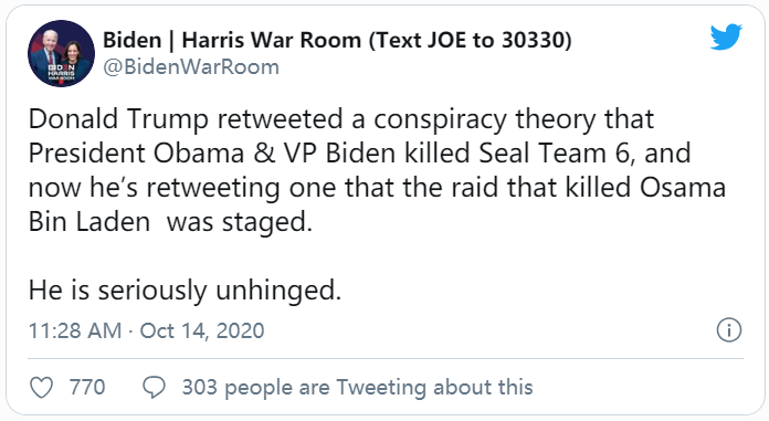 https://www.forbes.com/sites/jackbrewster/2020/10/14/trump-promotes-baseless-qanon-endorsed-conspiracy-theory-alleging-obama-staged-bin-ladens-killing/#7f72fef75b16