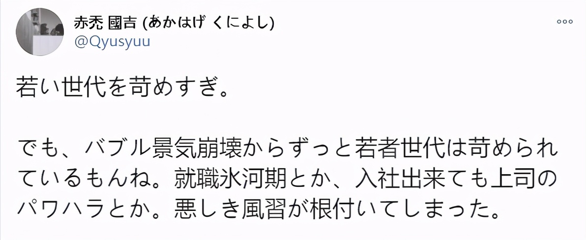 自从泡沫经济破灭后,年轻一代就一直被折磨,比如就业冰河期,哪怕能进入一家公司,还是会受到老板的刁难。