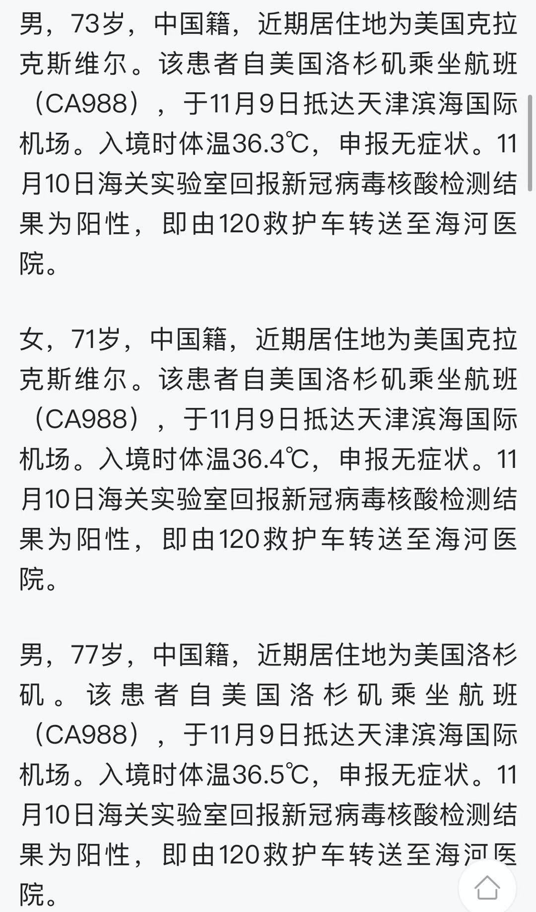 例如在11月9-10日,一架洛杉矶回国的航班上,9例阳性病例。