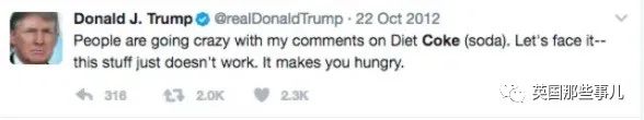 虽然他自己在2012年曾发推diss过健怡可乐。