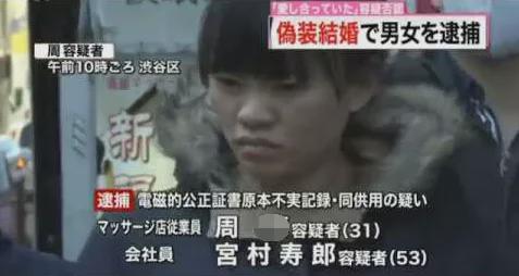 2017年1月,中国籍女子周某与日本籍男子宫村因涉嫌假结婚获取在日签证被捕。