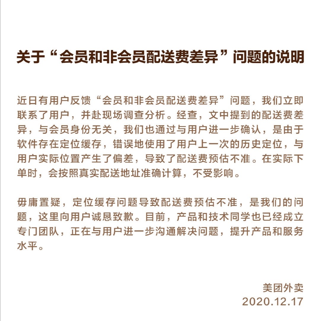 相比较饿了么“耿直”甩锅,美团“愿意多等8分钟”这波操作赢了用户的掌声,却不成想最终因“大数据杀熟”问题难逃一劫。近日,互联网巨头美团再次因为大数据“杀熟”外卖会员一事翻车。在相同的时间、店铺、地点,美团会员的配送费竟然比非会员高出4元。对此,美团回应系软件定位缓存错误,但大多数网民并不买账。