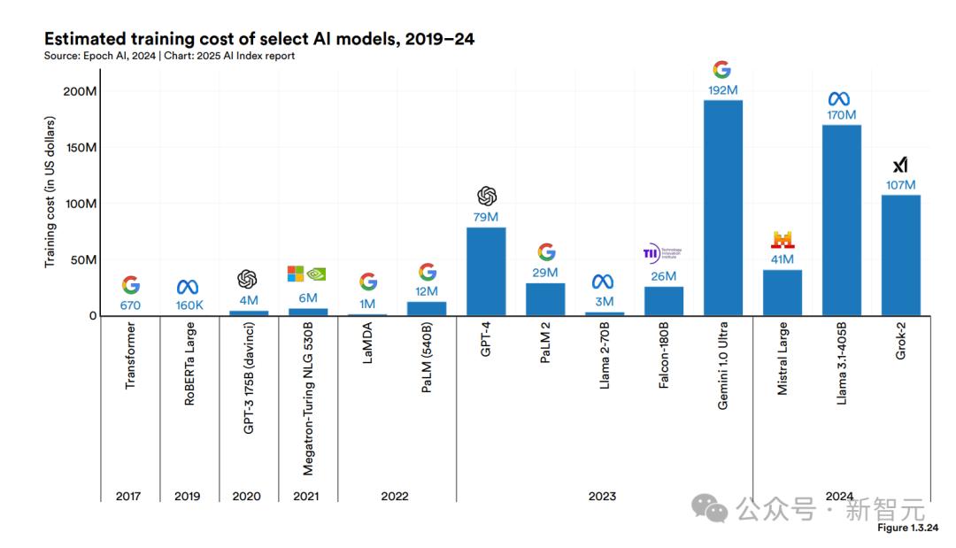 虽然很少有AI公司披露具体的训练成本,但这个数字普遍已达到数百位美元。