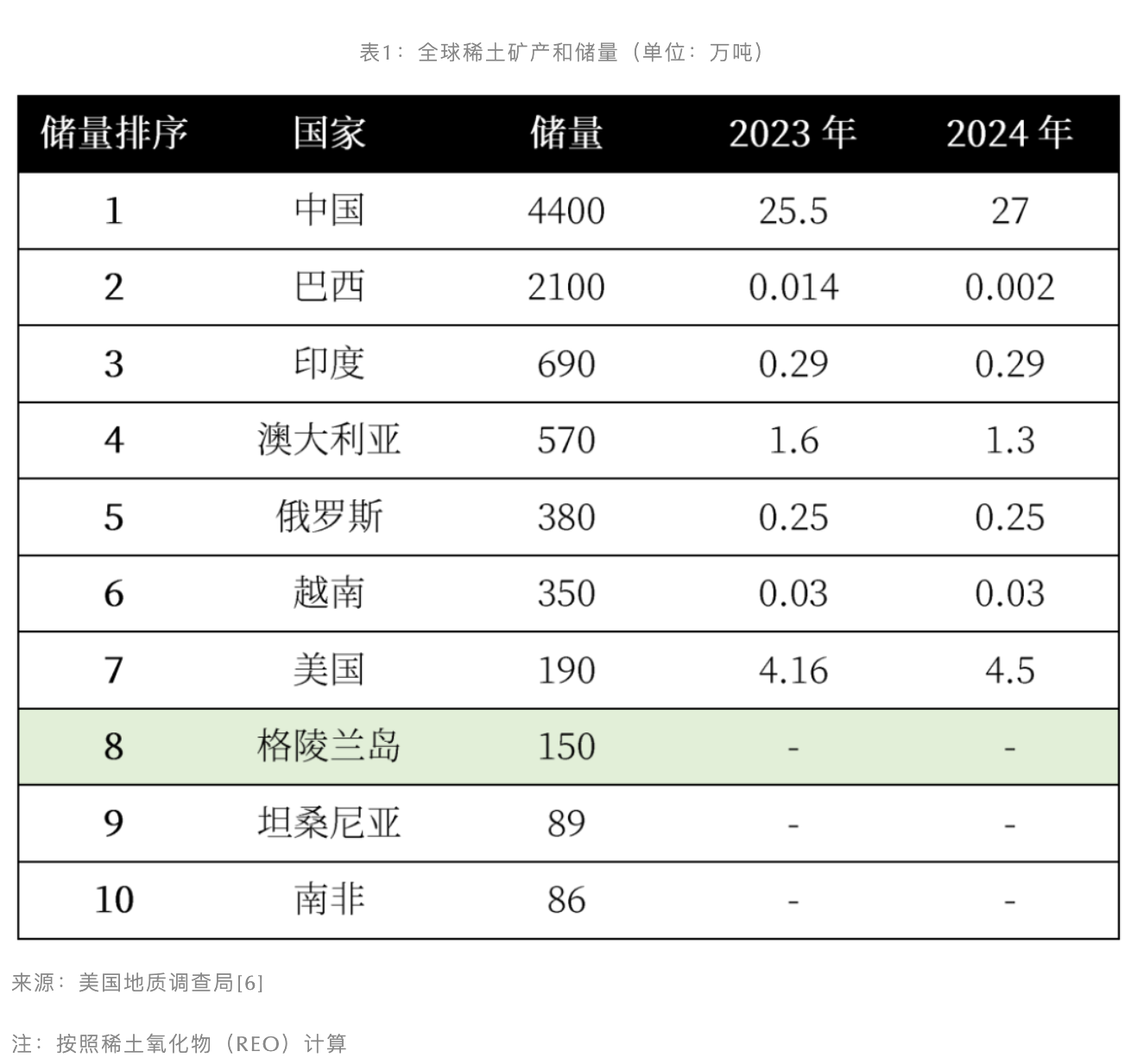 格陵兰岛最具地缘博弈色彩的资源仍是稀土。根据美国地质调查局的数据,格陵兰岛稀土储量约150万吨,位居全球第八。更为关键的是,格陵兰岛拥有罕见的高比例重稀土资源,如镝和铽,这些元素是制造F-35战机雷达、核潜艇声纳及电动汽车永磁电机的核心原料。