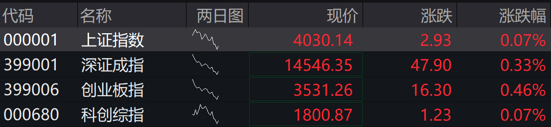 【天维网综合报道】4月16日,A股四大指数集体高开,沪指高开0.07%,深成指高开0.33%,创业板指高开0.46%,科创综指涨0.07%。